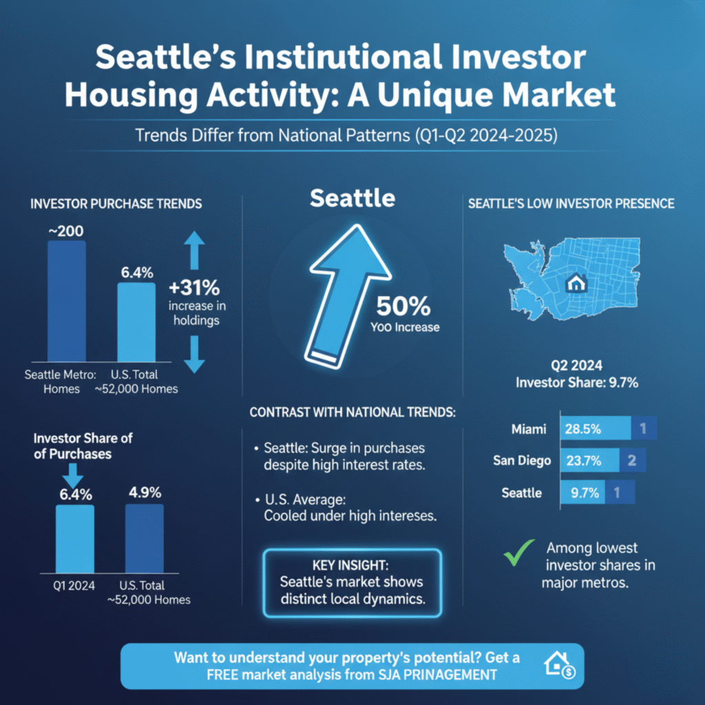 The data suggests institutional investor presence in Seattle remains relatively limited compared to both national averages and other major metropolitan areas.