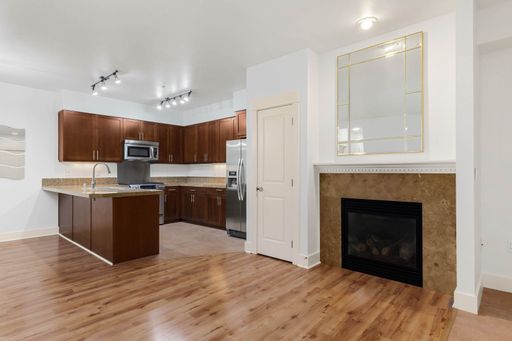 Welcome to this stunning 2-bedroom, 2-bathroom home located in the vibrant city of Redmond, WA. Enjoy easy one-level, stairless living w/ quality craftsmanship, high-end finishes with soaring vaulted ceilings. All new hardwood floors and newly painted throughout. Relax around the gas fireplace and prepare your favorite meals in the chef’s kitchen with gas cooking. Retreat to your large primary suite offering a walk-in closet & en-suite bath with double vanity. Custom walk-in closet. One assigned parking plus your own private garage!