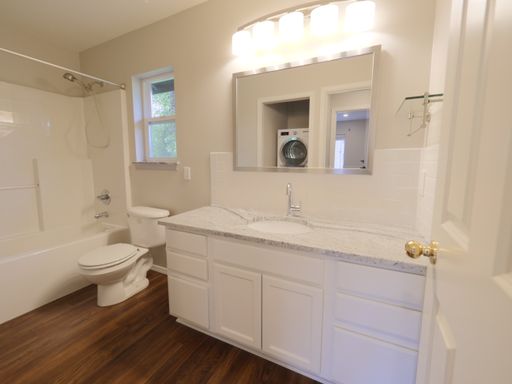 Enjoy a spacious layout featuring a gas fireplace, stainless steel appliances, granite countertops, and a gas stove for effortless cooking. The home also includes a high-efficiency Bosch washer and dryer, luxury vinyl plank flooring for easy maintenance, and LED smart lighting compatible with Lutron, Alexa, and Google Home for seamless control. Stay comfortable year-round with a heat pump and air conditioning.