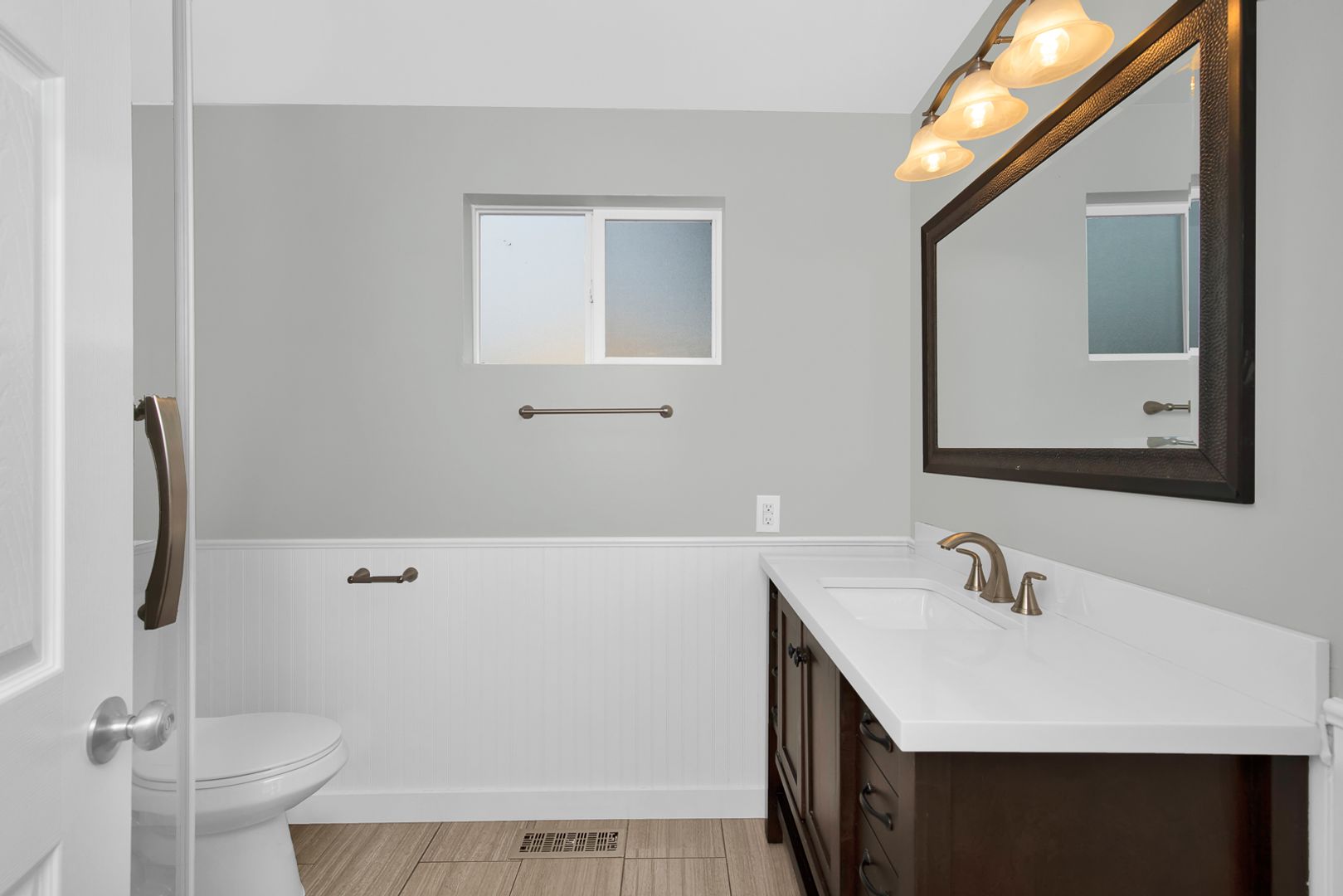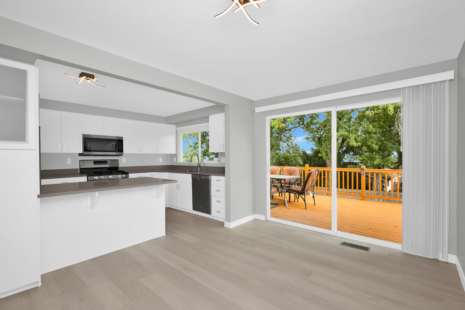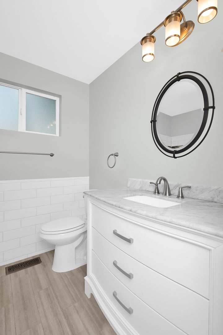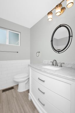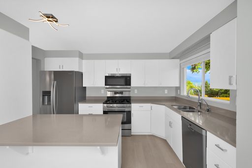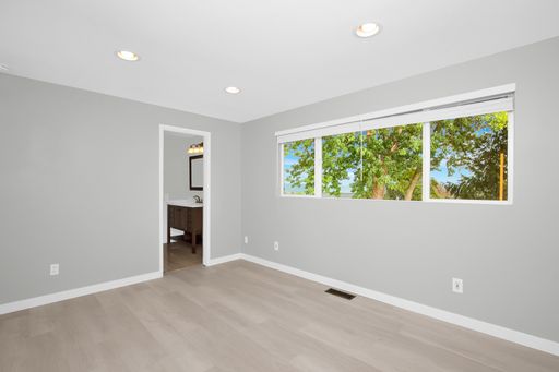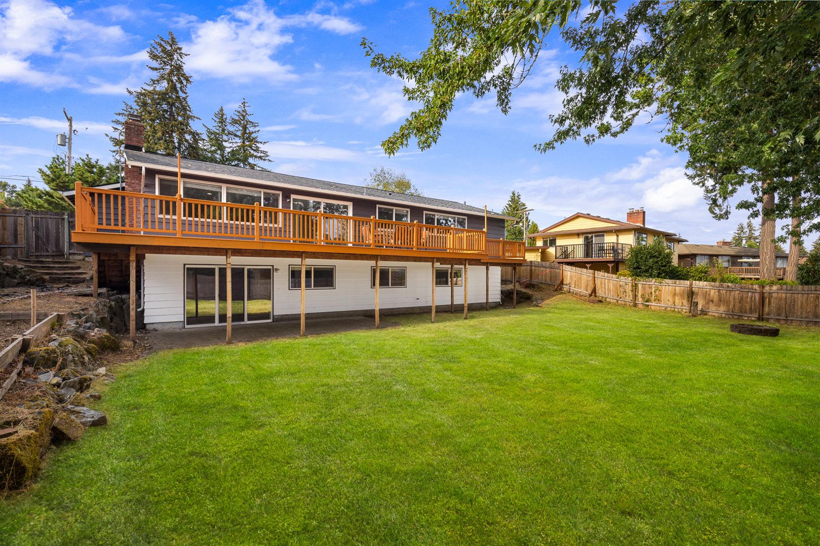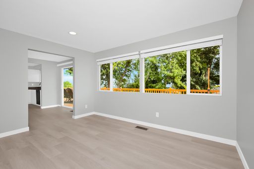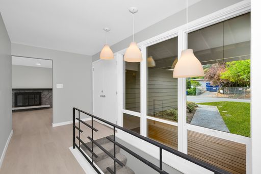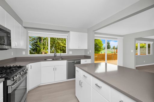 This light-filled Lochmoor home sits on a flat fenced lot - Plank flooring & good interior paint, updated bathrooms & fully remodeled basement. Crisp White Cabinets line the kitchen which has large windows & doors opening to the expansive deck w/beautiful views of sunrise over Cascades & the lake.