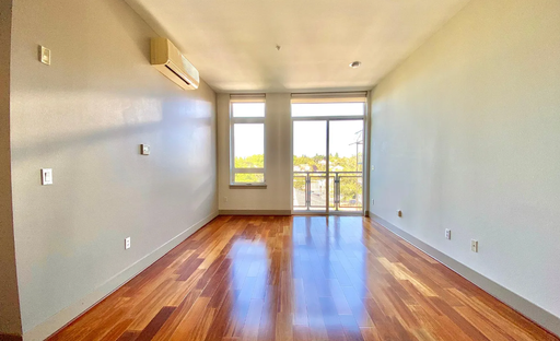 Inside, this top-floor unit offers privacy with no upstairs neighbors, high ceilings, and abundant natural light throughout. The recently replaced mini-split system provides efficient air conditioning and heating, and the in-unit washer and dryer combo has also been recently updated. Hardwood floors highlight the main living area, complemented by a tile bathroom and a comfortable carpeted bedroom. Secure guest parking is available, with additional street and zoned parking nearby.