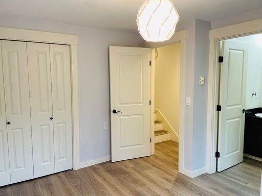 On the main floor, enjoy a split-level open concept with a dining area, modern kitchen, and inviting living room. The kitchen is complete with granite counters, stainless steel appliances, and hardwood floors. A convenient half bath is also located on this level.