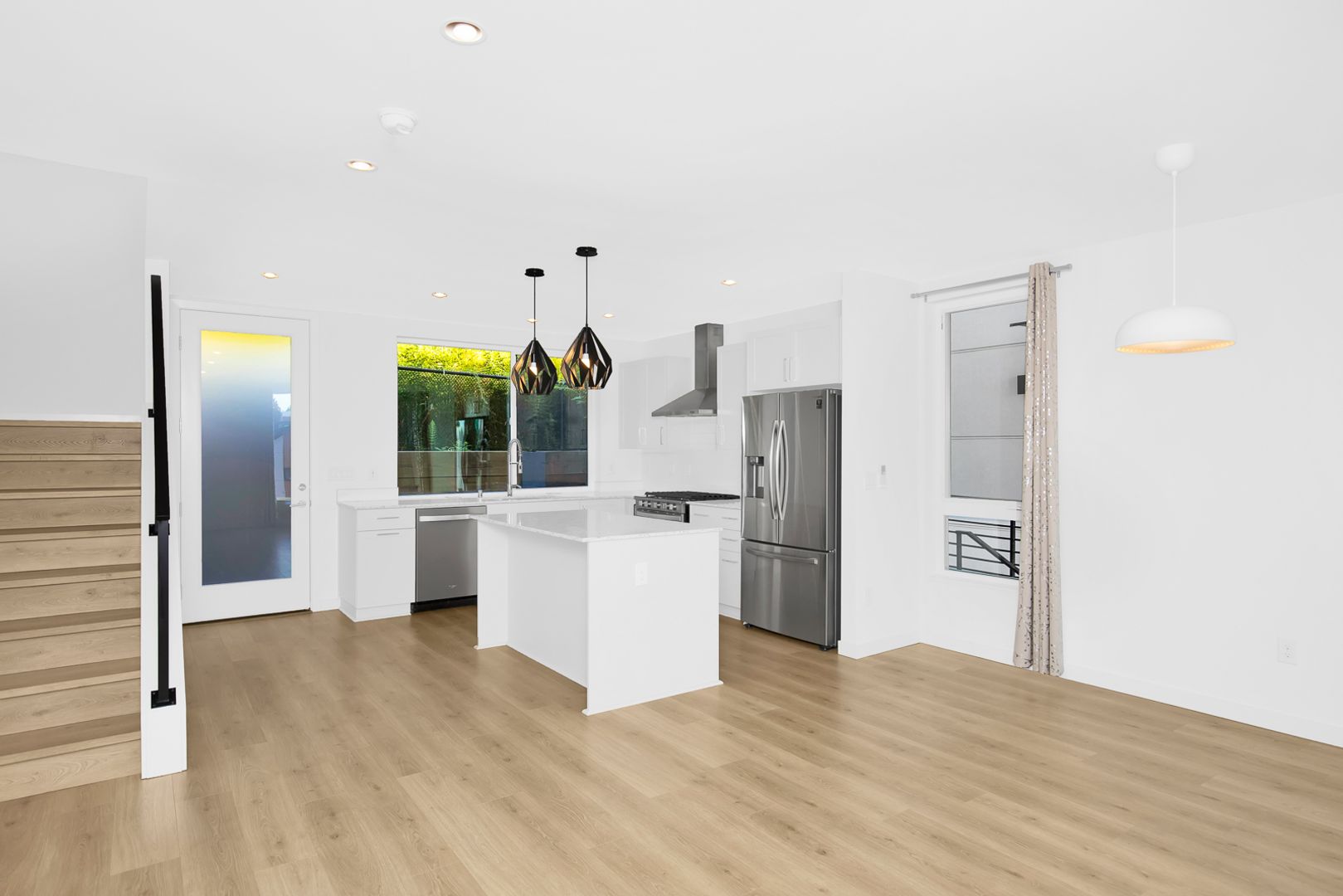 Our residences boast contemporary urban design complemented by timeless finishes, including painted wood cabinetry, quartz countertops, full-height tile backsplash, stainless steel appliances, and elegant metal railings. This detached 3-bedroom, 3-bathroom home comes complete with a one-car garage and additional storage space. The Great Room floor plan encompasses an island kitchen, offering ample space for entertaining. The master bedroom features an ensuite bath and a walk-in closet, while the abundance of windows ensures an infusion of natural light. Step outside to the patio and enjoy the surroundings. Conveniently located within walking distance to the light rail, these homes are also constructed with a focus on environmental sustainability as part of the Built Green initiative.