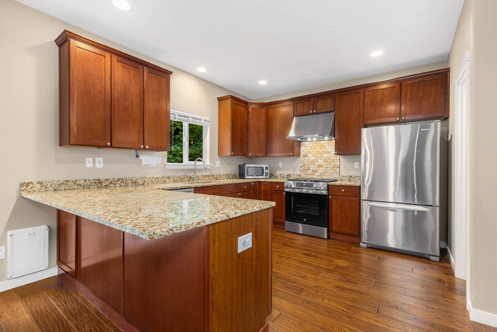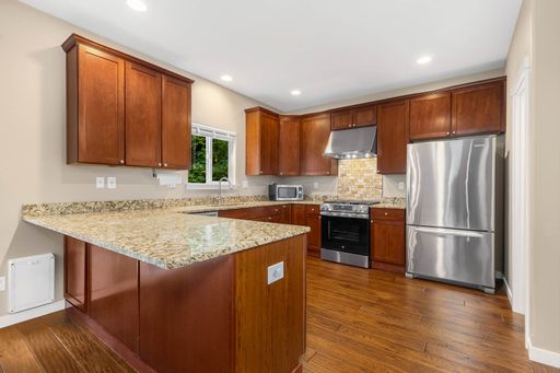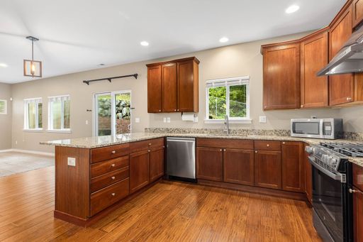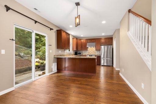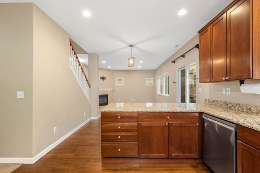This classic Craftsman offers the perfect blend of formal and casual living. Warm hardwood floors lead you through inviting spaces, while the gourmet kitchen features granite counters, a gas range, pantry, and a convenient main-level bedroom ideal for guests.