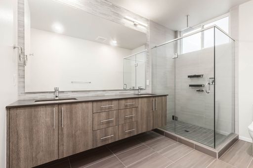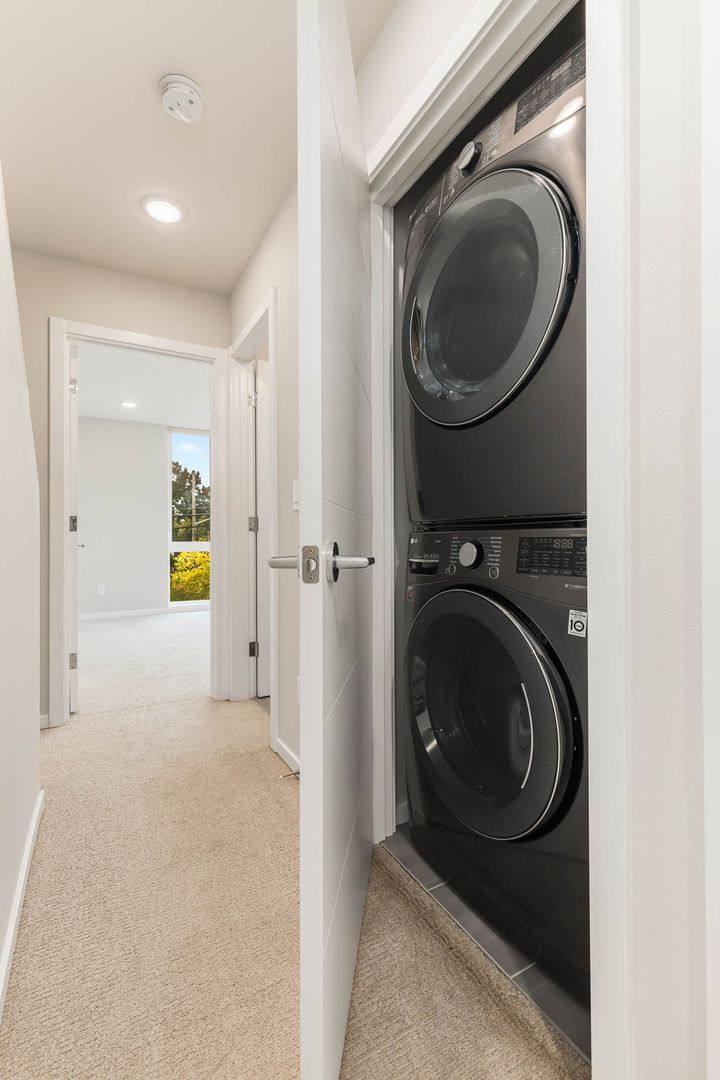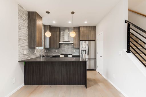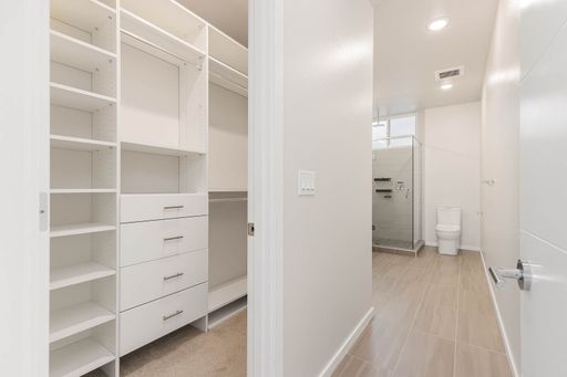 Upstairs, you’ll find two bedrooms, a full bath, and convenient in-home laundry. The top floor is dedicated to the primary suite, complete with a large walk-in closet and a spa-like bathroom with double sinks and a walk-in shower.