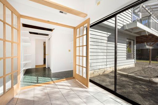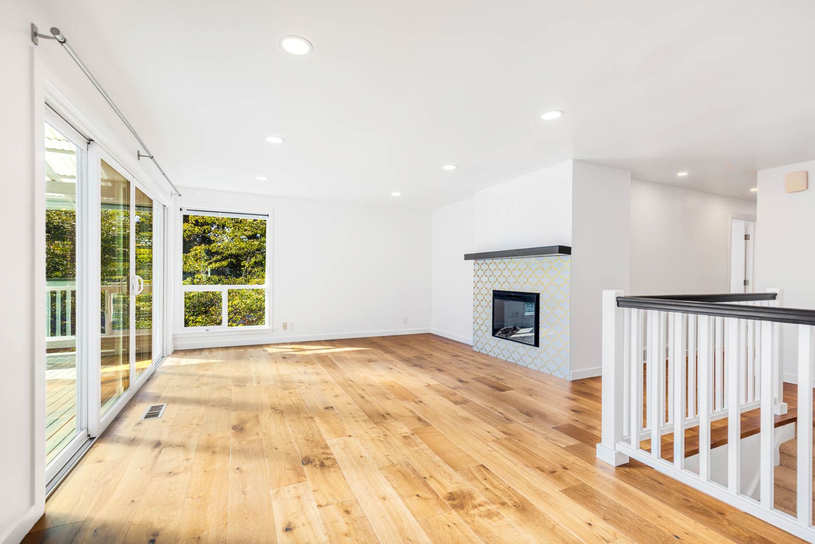 The renovated kitchen greets you off the entry, featuring top-of-the-line appliances, a large island, and an open flow into the living room. Cozy up by the fireplace or step onto the expansive wraparound deck—perfect for morning coffee, summer BBQs, or simply enjoying the sunrise. Gleaming hardwood floors flow throughout the upstairs living areas, adding warmth and character.