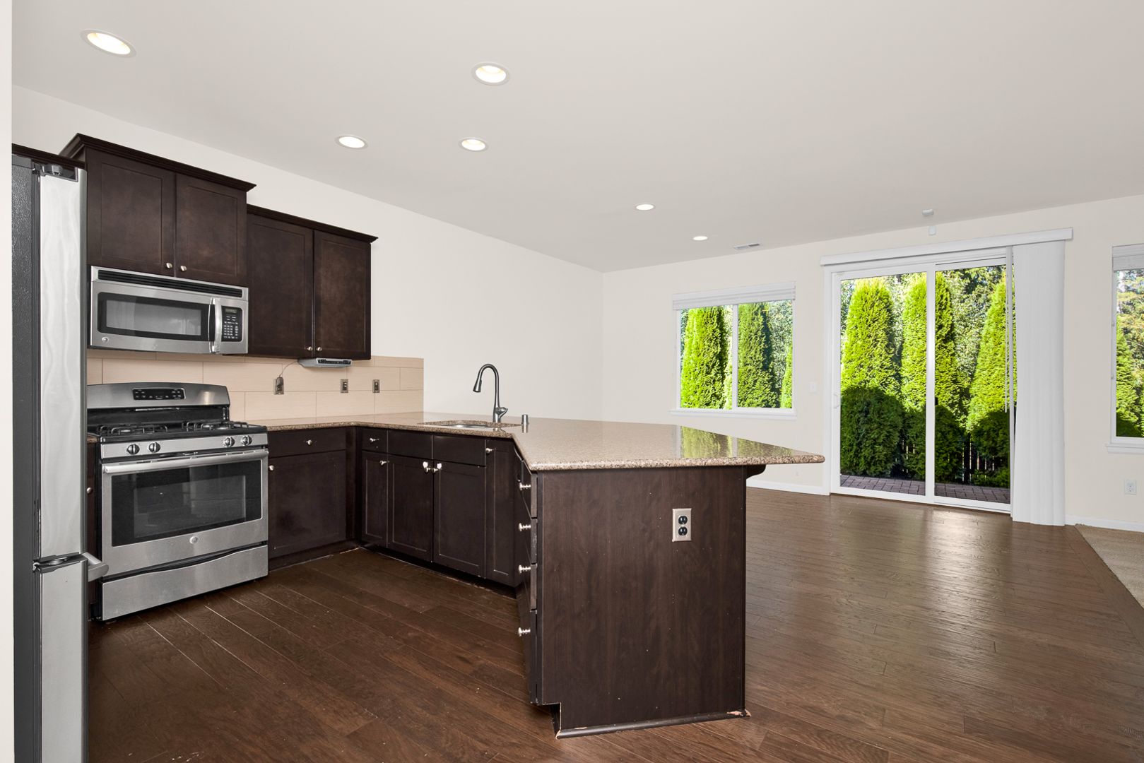 The kitchen has hardwood floors, stainless steel appliances, granite counter tops, gas stove and pantry. Close to 405 and Canyon Park. EZ commute to Eastside.