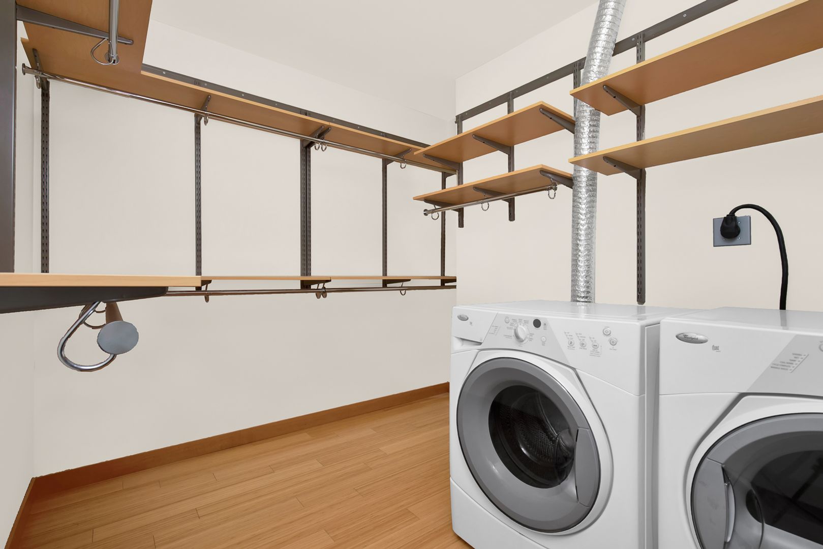 Open floor plan, high ceilings and top quality finishes. Entry is off of a peaceful courtyard landscaped w/native plantings, private patio in back. 2 BRs + den/office. Underground parking w/extra storage.