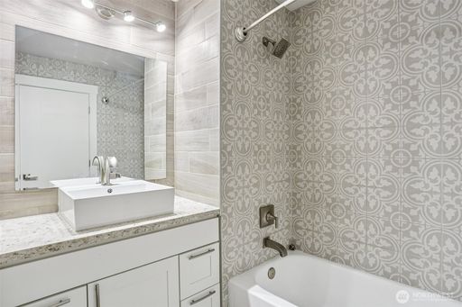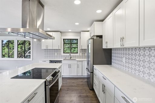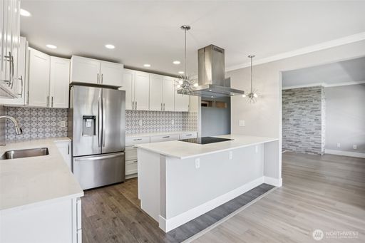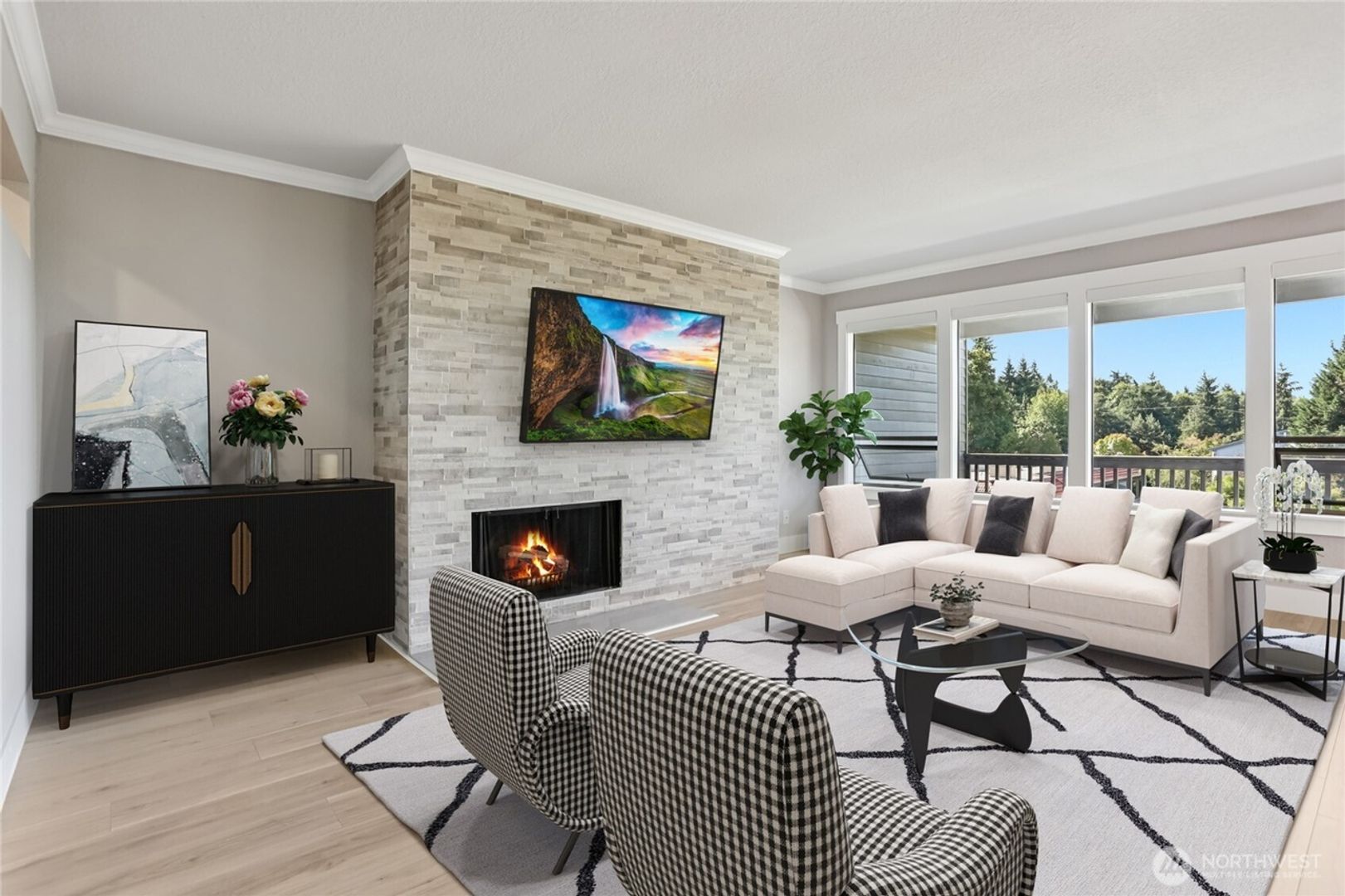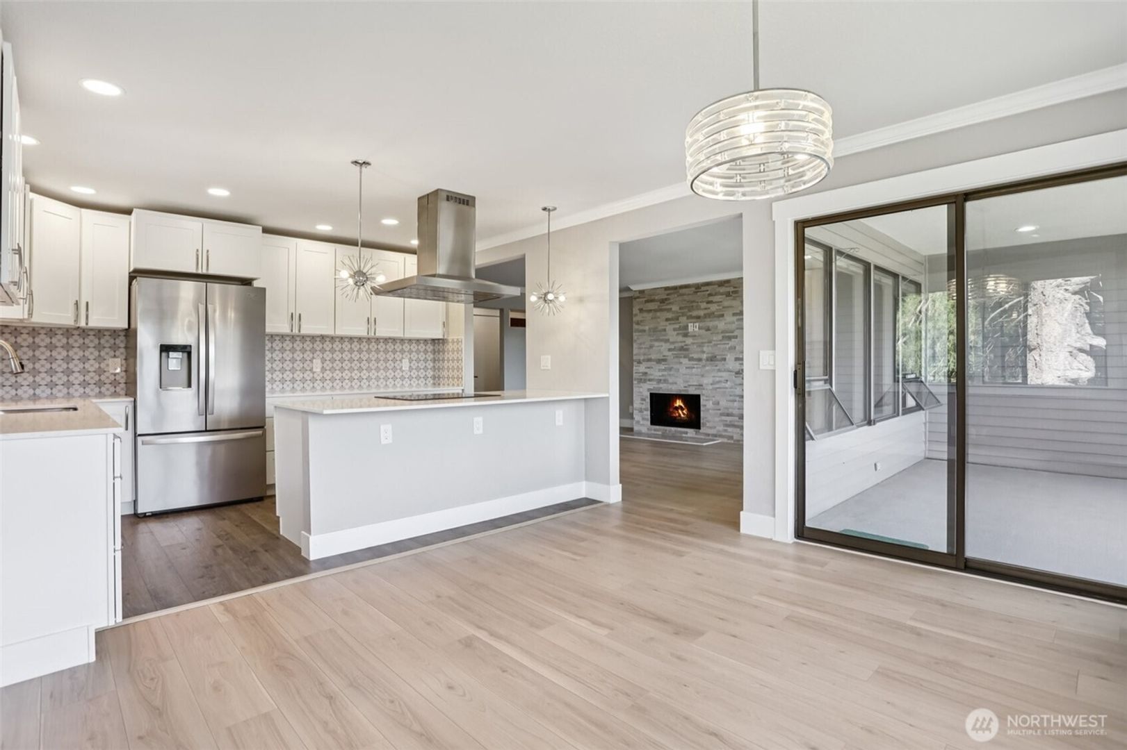 Welcome to the Newly Remodeled Juanita Gem, a stunning 2-bedroom, 2-bathroom home located in the heart of Kirkland, WA. This home boasts a sleek modern kitchen, complete with new quartz countertops and stainless appliances, offering a luxurious and contemporary feel. The open concept living area, accentuated by a cozy gas fireplace, provides a spacious and inviting atmosphere for entertaining or relaxing. The large corner covered balcony is an added bonus, perfect for enjoying the outdoors in any weather. This home also features a convenient in-unit laundry, adding to its practicality and ease of living. With its recent renovations, this home combines modern elegance with functionality, making it a true gem in the Juanita neighborhood.
