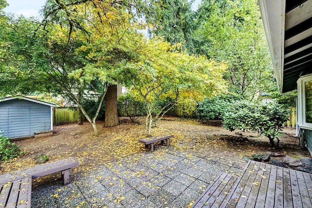Classic 3-bedroom, 1.5 bath home with garage and minutes from Microsoft! Spacious living area with hardwood flooring & wood burning fireplaces. Many updates throughout the home including a more modern kitchen, laminate flooring downstairs and bathroom enclosure upstairs. Updated dining room has access to the wonderful back patio with nature-like setting and a great storage shed! Large lot with easily maintained landscaping and fully fenced back yard. Home exterior was repainted in May of 2022. It is meticulously maintained and looked after with care and love by the owner. Close to Redmond Town Center & Grass Lawn Park! Award winning Lake Washington School District.