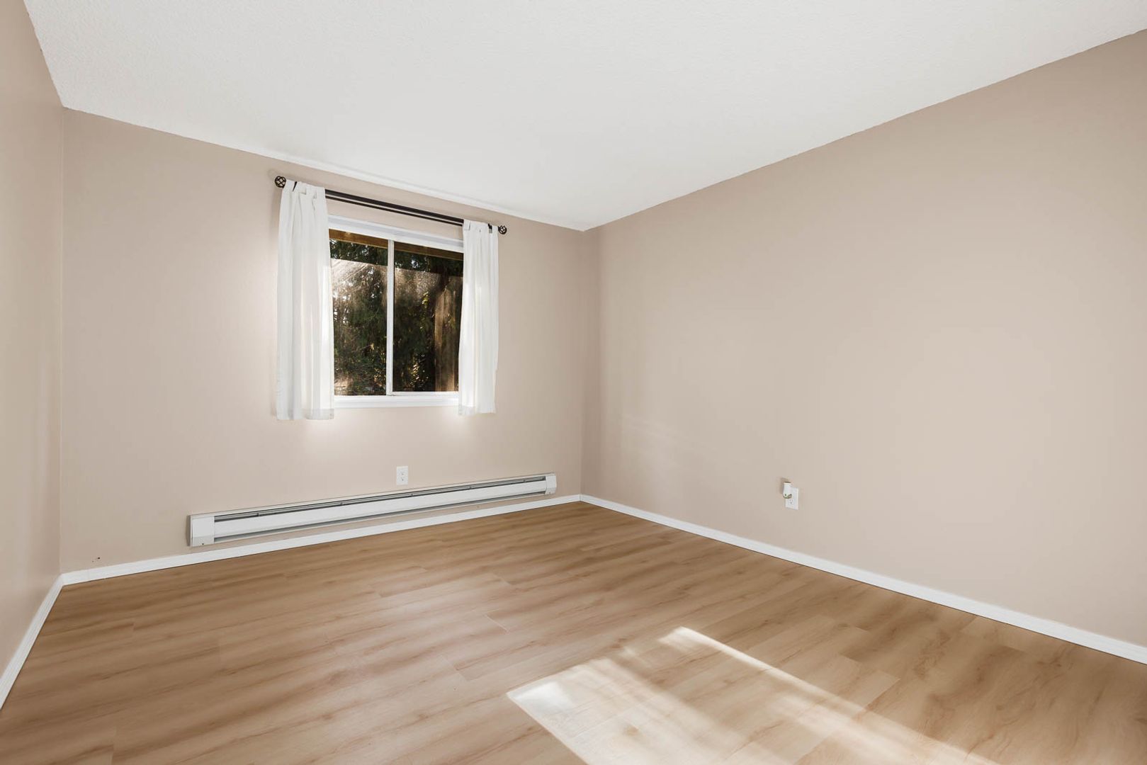 The home includes three bedrooms, each with vinyl flooring, sliding-door closets, and great natural light, offering comfortable and practical living spaces.
